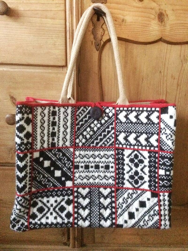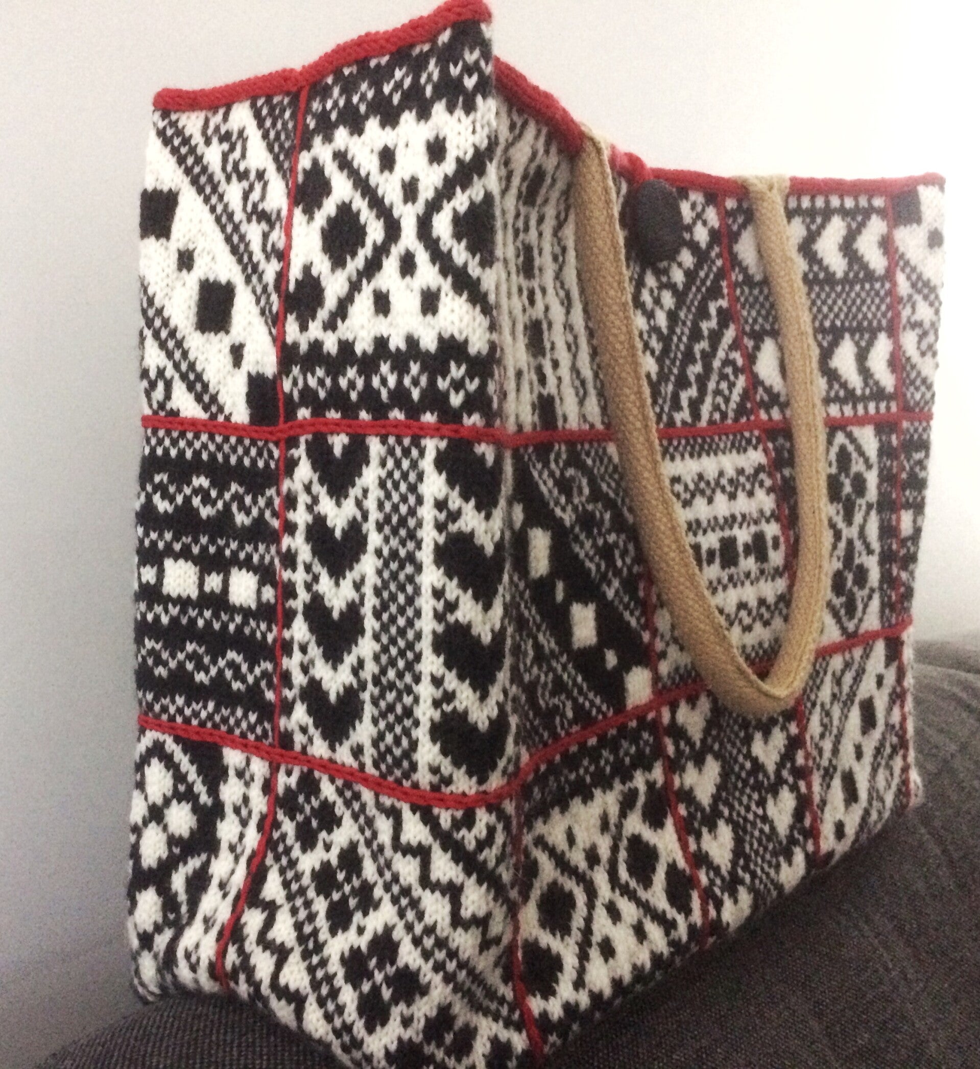 De prachtige ingeweven patronen van het Zeeuwse Schortenbont zijn mijn inspiratiebron geweest voor de Zeeuwse Tas. De tas wordt gebreid met sokkenwol en past precies om een AH-tas (l x b x h = 41 x 15 x 33 cm), mits de juiste stekenverhouding is aangehouden!