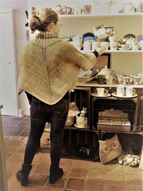 Ik noem hem Ponchito vanwege zijn formaat. Het is geen grote poncho, maar ook geen schouderwarmer geworden. Hij zit er tussenin. In het Spaans zorgt de toevoeging -ito voor een verkleining van het woord. Een kleine poncho dus!